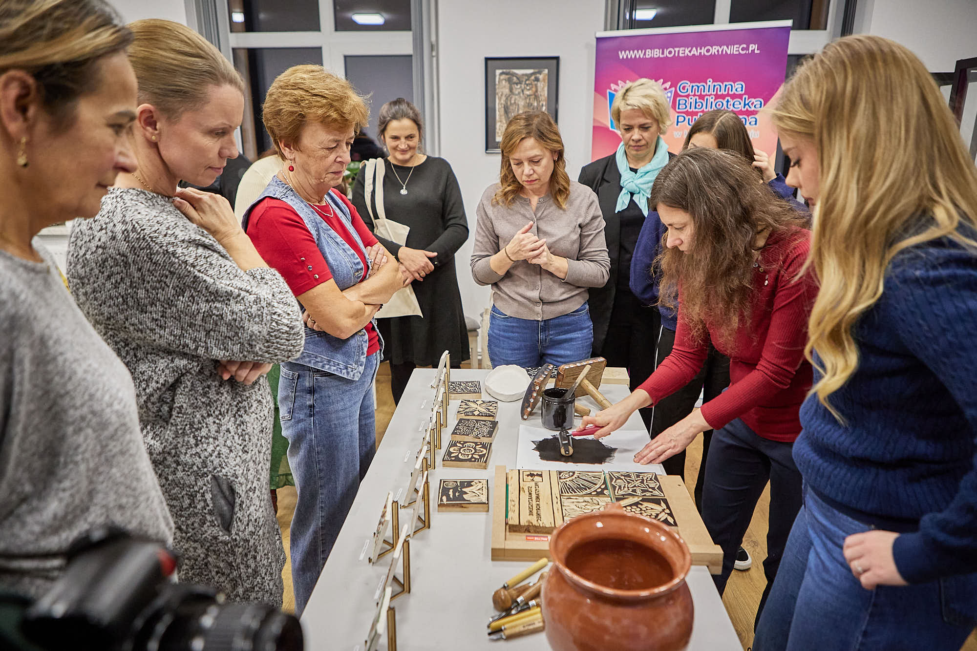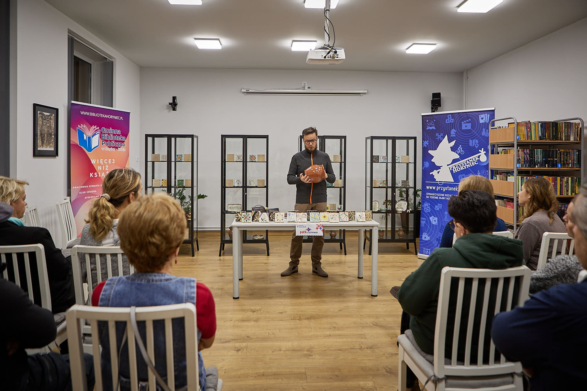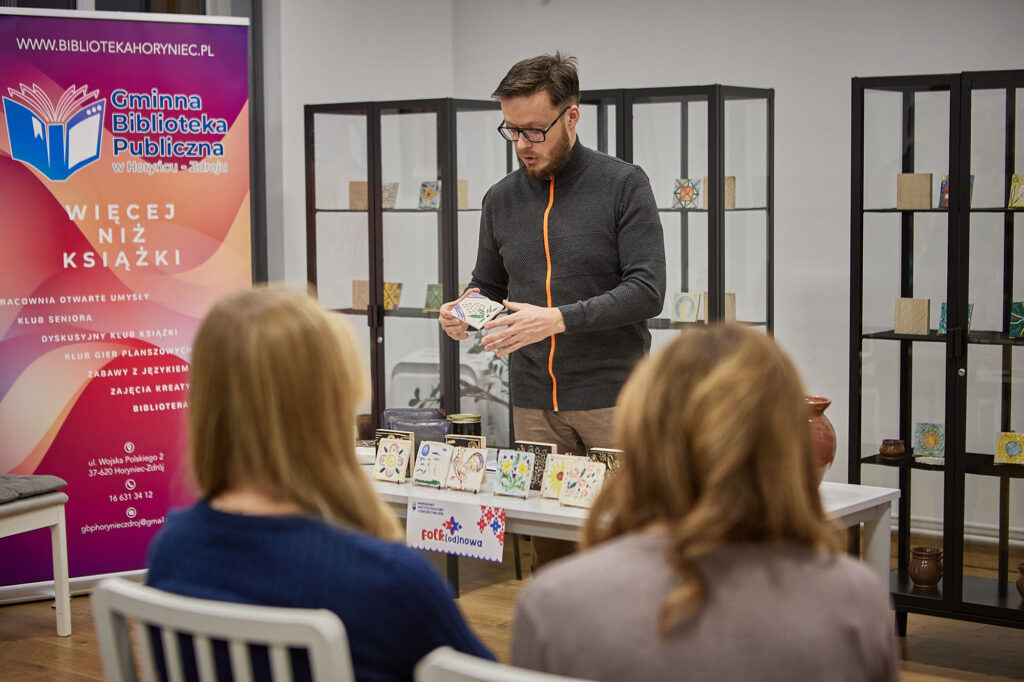 W środowy wieczór, 29 października, w Gminna Biblioteka Publiczna w Horyńcu-Zdroju spotkaliśmy się, by wspólnie podsumować projekt „Tradycja odbita w glinie i drewnie”. Była to nie tylko okazja do zaprezentowania przez pomysłodawcę i koordynatora projektu Krystiana Kłysewicza efektów naszej pracy, ale też do rozmowy o tym, co udało się osiągnąć – i co jeszcze przed nami