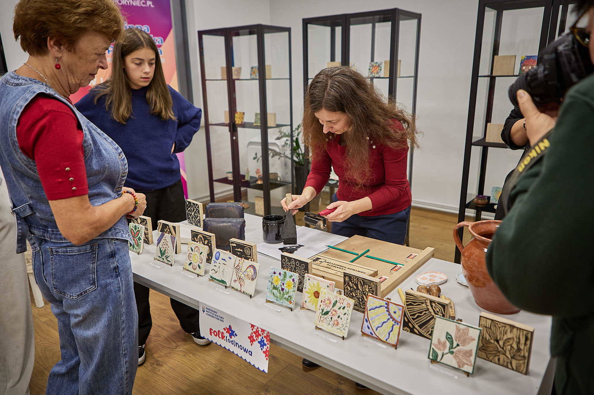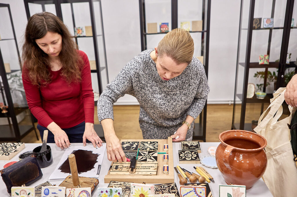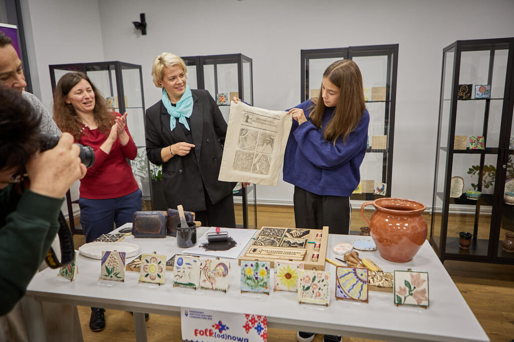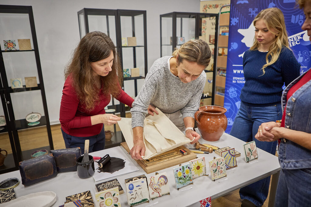 , które powstały podczas warsztatów. Każdy z tych przedmiotów niesie w sobie ślad rąk, pomysłów i emocji – a przede wszystkim połączenie dwóch tradycji regionu: garncarstwa i drzeworytu